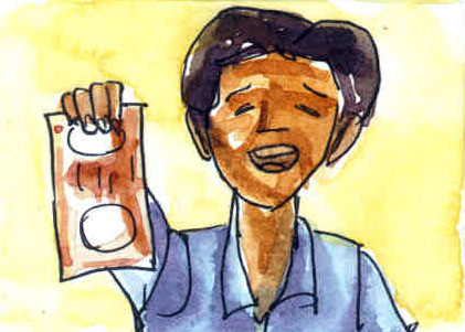 "నాలుగు రోజుల తర్వాత ఆ కూరలతను వచ్చాడు- ఈసారి అతని వెంట అతని కొడుకు, పదేళ్లవాడు- వాడు కూడా వచ్చాడు. అప్పుడు మేము నోటు గురించి అడిగాం. ఆ కూరలతను ఏమన్నాడో తెలుసా?- 'ఏ నోటు గురించి మాట్లాడుతున్నారమ్మా?' అని అడిగాడు!