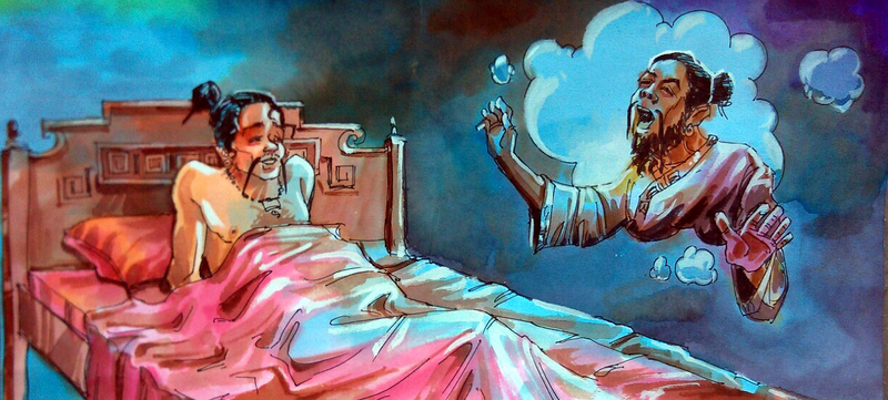 చీనీ దేశంలో హూణుల పరిపాలన సాగుతున్న రోజులవి. ఆ రోజుల్లో కక్షలు, కార్పణ్యాలు చాలా ఎక్కువగా ఉండేవి అక్కడ. 'యువాన్-నంగ్' అనే ఉడుకు రక్తపు కుర్రవాడు చేసి పెట్టమన్న పనినేదో 'చావో-సో' అనే తోటి ఉద్యోగి ఒకడు చేసిపెట్టలేదు. దాంతో వాడికి చాలా కోపం వచ్చింది. అదను చూసుకొని 'చావో-సో'ను నిర్దాక్షిణ్యంగా చంపేసాడు వాడు. అయితే ఆ తర్వాత వాడికి ఇక శాంతి లేకుండా పోయింది. ఏవేవో ఆలోచనలు రావటం మొదలు పెట్టాయి. పగలూ - రాత్రీ ఎడతెరపి లేకుండా ఆలోచనల వరద మొదలైంది. వాటి మధ్య , వాడికి 'చావో-సో' ఆకారం కనిపించటం మొదలెట్టింది.