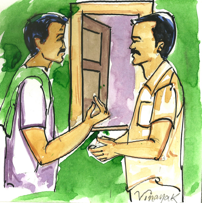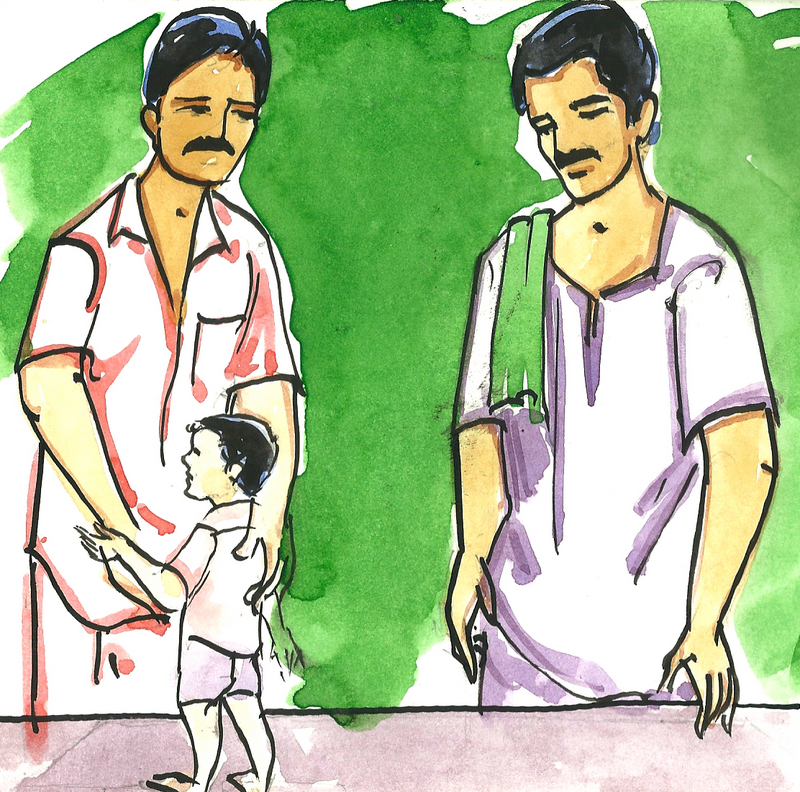 "అయ్యా! నేను మీవాడిని బయటికి తీసుకెళ్ళానా, ముందు వాడు బయట ఇసుకలో ఆడుకుంటానన్నాడు. నేను వాడిని ఇసకలో వదిలేశాను. కొద్దిసేపటికి తిరిగి వచ్చి, "ఇప్పుడు పార్కులో ఆడుకుంటా" అన్నాడు. "సరేలే" అని వాడిని తీసుకెళ్ళి పార్కులో వదిలేశాను.