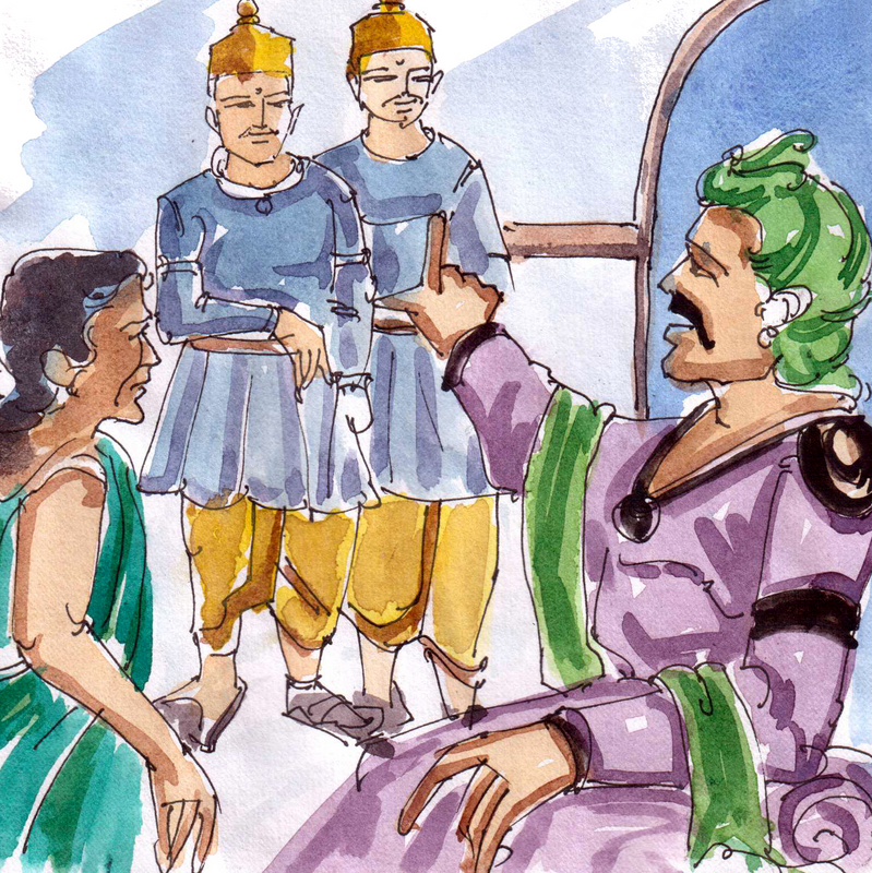 "మా ఊరు పహాడీలో నీళ్ళు లేవు ప్రభూ! మా ఊరివాళ్లం అందరం కోటలోని బావి నీళ్ళనే వాడతాం"