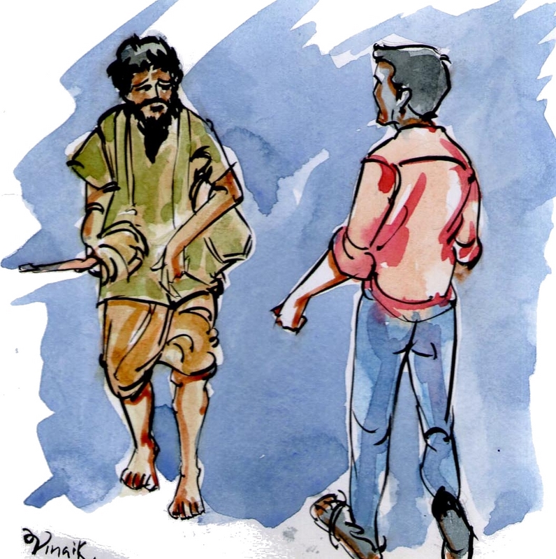 "తాతా! ఎందుకు ఇట్లా బిచ్చమెత్తుకుంటున్నావు? ఎక్కడైనా కష్టపడి పని చేయచ్చు కదా" అడిగాడు పైకి.