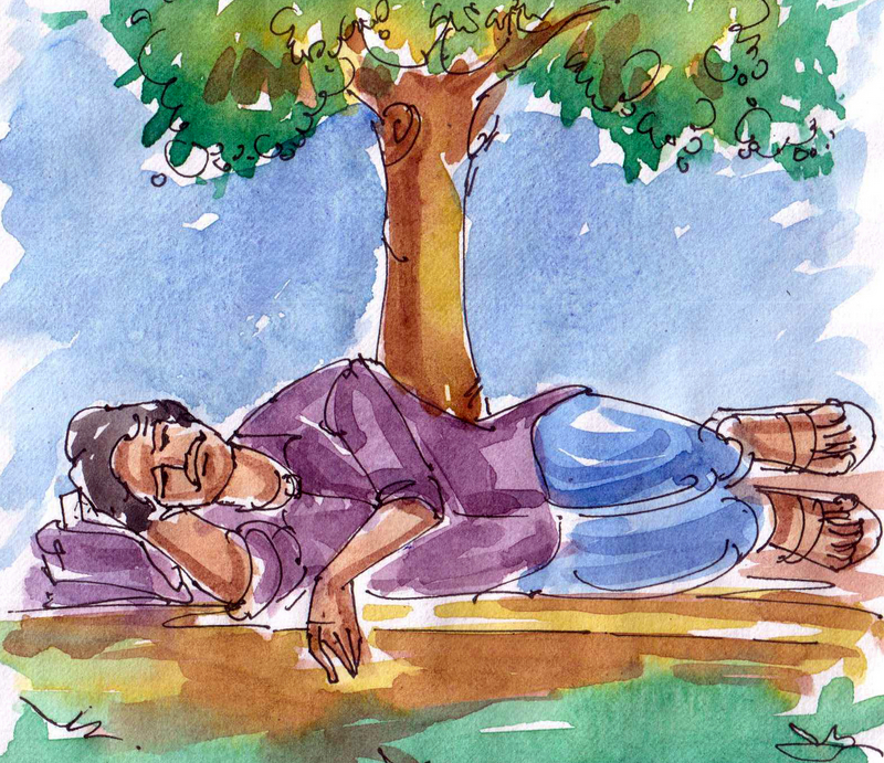 ఇంకో గంటకే బాగా అలసిపోయాడు విష్ణువర్మ కూడా. "మిత్రమా! బాగా అలసటగా ఉంది. ఇక్కడెక్కడైనా ఆగి కొంతసేపు విశ్రాంతి తీసుకుందాం. నా చేతిలో జమీందారు గారి డబ్బుంది. అందుకని కొంత జాగ్రత్త అయితే అవసరం. ముందు నేను పడుకొని కొంచెం సేపు కునుకు తీస్తాను. ఆ సమయంలో నువ్వు కాపలాగా ఉన్నావంటే, ఆ తర్వాత నువ్వు పడుకున్నప్పుడు నేను కాపలా ఉండచ్చు. అట్లాగైతే జంతుభయం కూడా ఉండదు!" అన్నాడు విష్ణువర్మ.