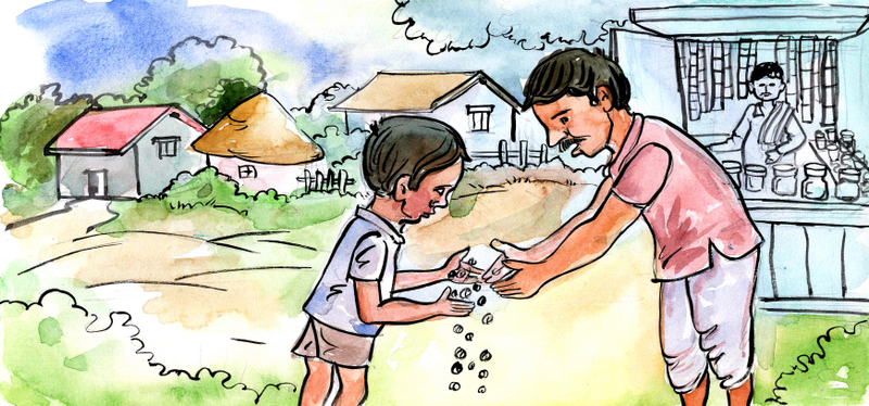 ఒక రోజున వెంగళప్ప వాళ్ల నాన్నతో కలిసి అంగడికి వెళ్లాడు. నాన్న బఠానీలు కొని పెట్టాడు. దుకాణాదారు బఠానీలు తూశాక, వెంగళప్ప తన దోసిలిని ముందుకు చాపాడు. దుకాణదారు కొంచెం తటపటాయిస్తుంటే వెంగళప్ప "ఇయ్యన్నా!"అన్నాడు. దుకాణదారు వాటిని తక్కెడలోంచి నేరుగా వెంగళప్ప చేతుల్లో పోశాడు.