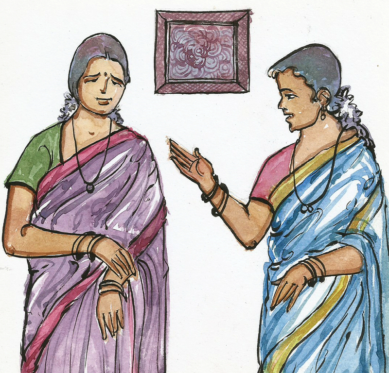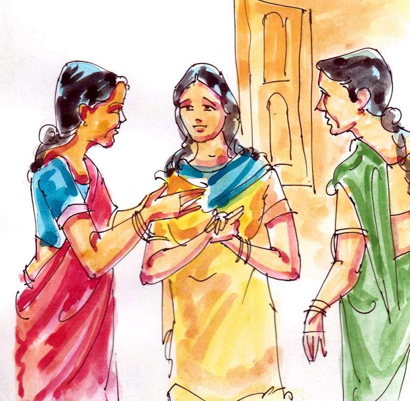 పల్లవి చాలా సంతోషంగా ఆమెను తమ ఇంటికి భోజనానికి ఆహ్వానించింది- "ఏయ్! ఎన్నేళ్లయింది, నిన్ను చూసి? ఇప్పుడు ఏం చేస్తున్నావు?" అన్నది.