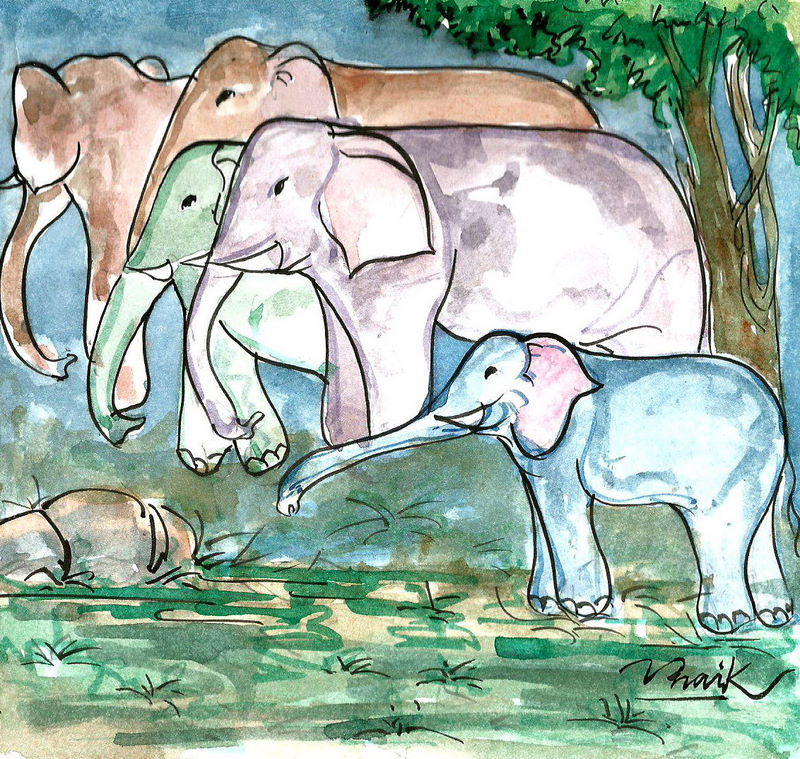 ఎలుకలు ఏనుగుల తొండాలలోకి దూరి సతాయించసాగాయి. చివరికి ఏనుగులు తట్టుకోలేక అడవిలోకి పారిపోయాయి.