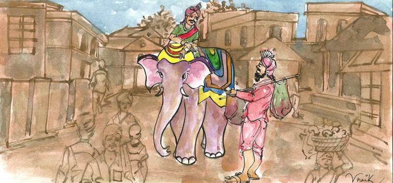 రాజుగారు ఆ మెతుకును అందుకొని, దానికేసీ- అన్నంతో నిండి ఉన్న అచ్చయ్య జోలె కేసీ చూస్తూ నవ్వారు. అంబారీ మీదినుండి దేన్నో తీసుకొని అచ్చయ్యకు అందేట్లు విసిరారు. అంబారీని ముందుకు నడిపారు.
