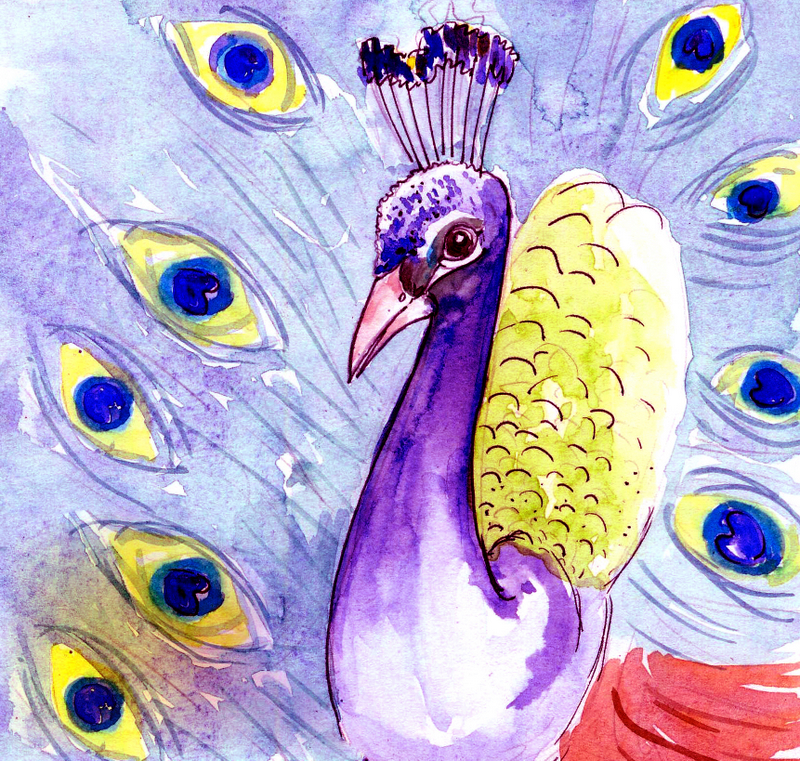 ఆ మధ్యనే ఎప్పుడో చిట్టి నెమలి ఒకటి, ఎక్కడి నుండి వచ్చిందో, వచ్చి చేరింది కొత్తపల్లిలో. దాని పింఛానికి ఎన్ని రంగులో లెక్కలేదు. నీలం, పచ్చ, ఆకాశనీలం, పసుపు, నలుపు-ఇంకా ఏమేమో రంగుల్ని మెరిపించేదది. అన్ని రంగులూ తళ తళలాడుతుంటే, వాటి నిగారింపులో ఊరంతా మునిగితేలేది. "అదిగో మెరుపు!" అని కొత్తవాళ్లు ఎవరైనా అంటే, "కాదులే, అది మా నెమలి!" అనేవాళ్లు ఊరి జనాలు.
