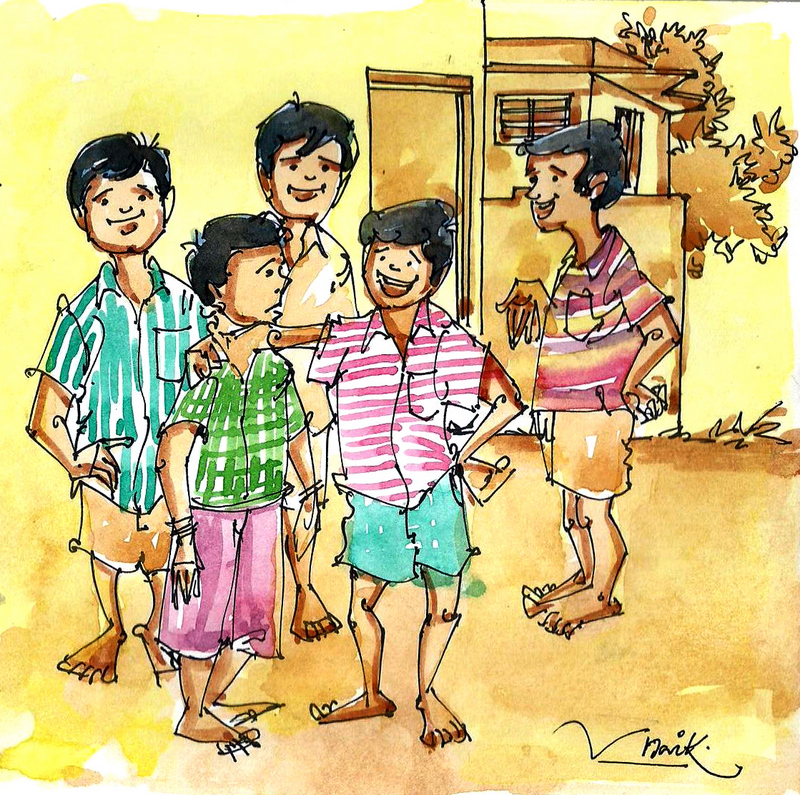 ఇట్లా పిల్లలు రంగుల్నీ, రుచుల్నీ, వాసనల్నీ, అరుపుల్నీ- ఇవన్నీ మోసుకొని ఊరంతా నింపేసరికి, నవంబరు నెల వచ్చేసింది. బడిలో పెద్దవాళ్ళు అందరూ ఒకటే ముచ్చట పడ్డారు: యీసారి పిల్లల పండగ చాలా బాగా జరపాలని.