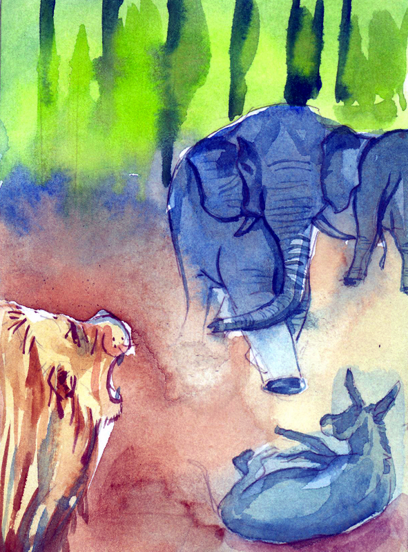 కొన్ని రోజులకు మదించిన ఏనుగుల గుంపు ఒకటి ఎక్కడినుంచో వచ్చి, అడవిలో స్త్వైరవిహారం చేయడం మొదలెట్టింది. కనిపించిన చెట్లనల్లా ధ్వంసం చేస్తున్నది. చిన్న ప్రాణులను కాళ్లతో త్రొక్కేస్తున్నది. ఘీంకారాలతో ఎవరికీ నిద్ర పట్టకుండా చేస్తున్నది.