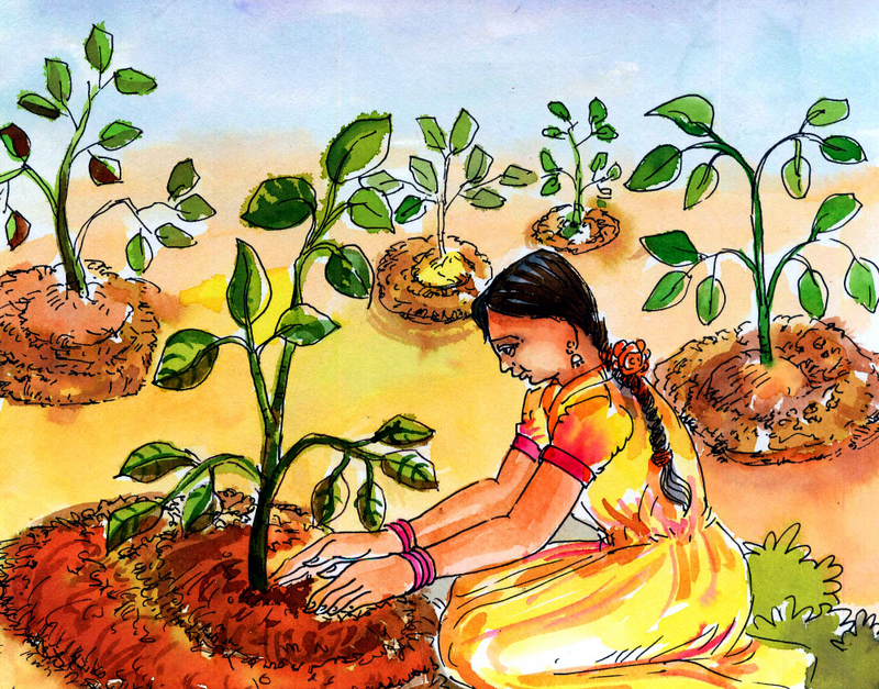 సాయంత్రం ప్రధానోపాధ్యాయుడిని అడిగి ఒక మొక్కను ఇంటికి తీసుకుపోయింది. మరుసటి రోజు పొద్దున్నే పొలానికి పోయి, తను నరికేద్దామనుకున్న వేప చెట్టుకు దగ్గరగా ఈ మొక్కను నాటింది. పాదు చేసి, నీరు పోసింది.