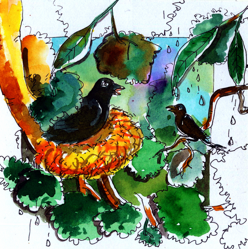 "కనీసం ఈ వాన ఆగేంతవరకూ నీ గూటి అంచునైనా తలదాచుకోనివ్వు" అంది కోయిల చలికి వణుకుతూ.