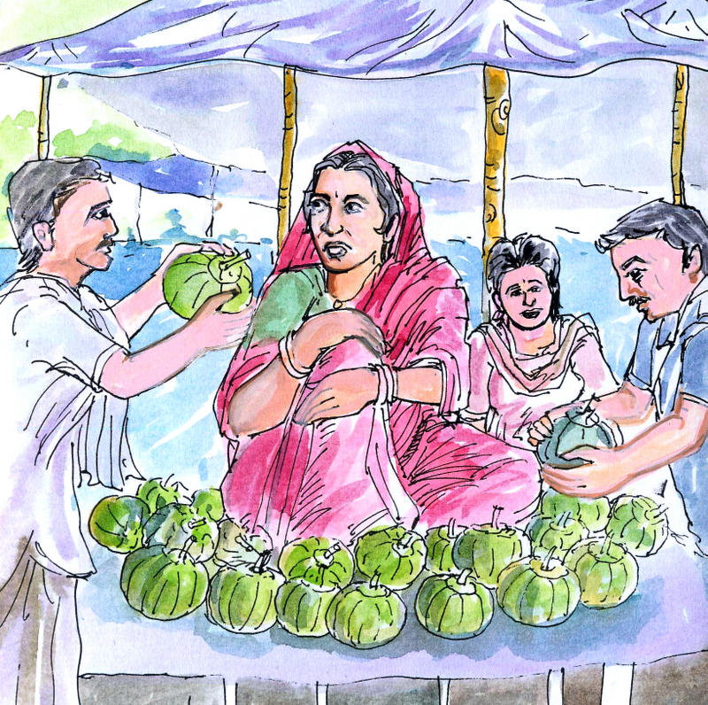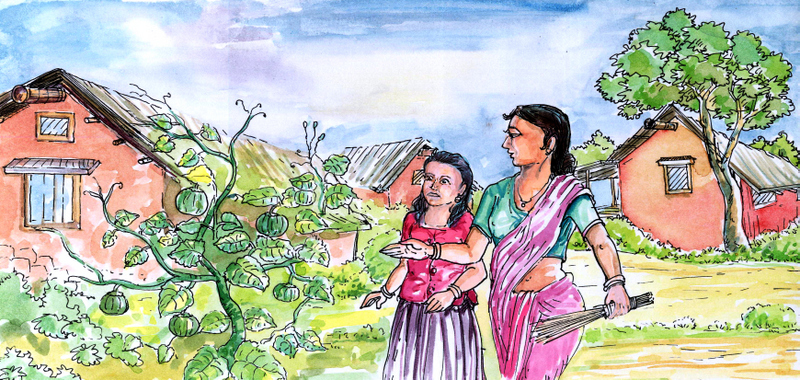 ఎప్పటిలాగానే ఆరోజు కూడా ఇల్లు చేరిందో లేదో-'ఆకలి ' అంటూ అరిచింది అమ్మూ. "ఉండు తల్లీ! వస్తున్నా.." అంటూ తను తెచ్చుకున్న గుమ్మడి గింజల పొట్లం తెచ్చి కూతురు చేతిలో పెట్టింది అంజమ్మ- "ఇవి తింటే ఆకలీ తీరుతుంది; బలమూ వస్తుంది! గుమ్మడి పండులా ఒళ్ళు గట్టి పడుతుంది!"అంటూ.
