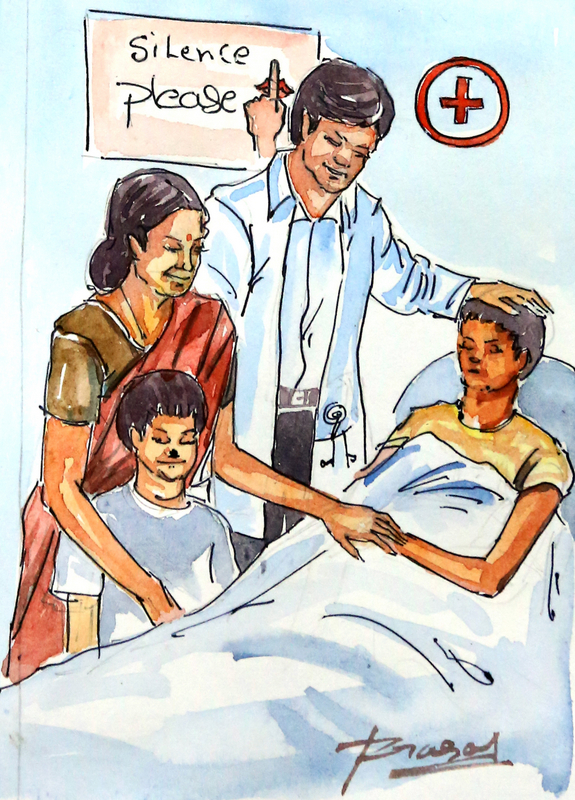అమ్మానాన్నలిద్దరూ వెంటనే వాడిని పిల్లల ఆసుపత్రికి తీసుకువెళ్లారు. ఎమర్జెన్సీ వార్డులో వాడికి రకరకాల టెస్ట్లు చేసారు: "ప్రస్తుతానికి నొప్పి తగ్గడానికి మందులు ఇచ్చాం; ఏమీ పర్లేదు; రేపు ఆపరేషన్ చేస్తాం' అన్నారు.