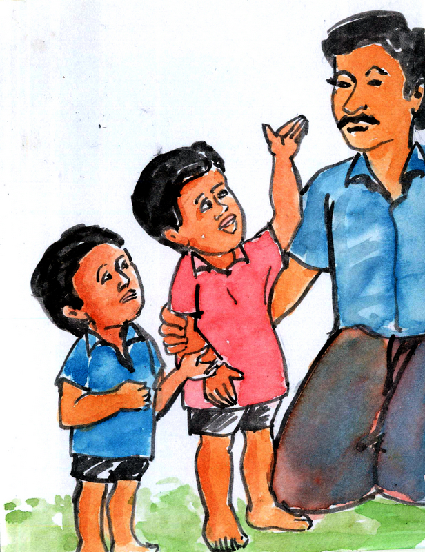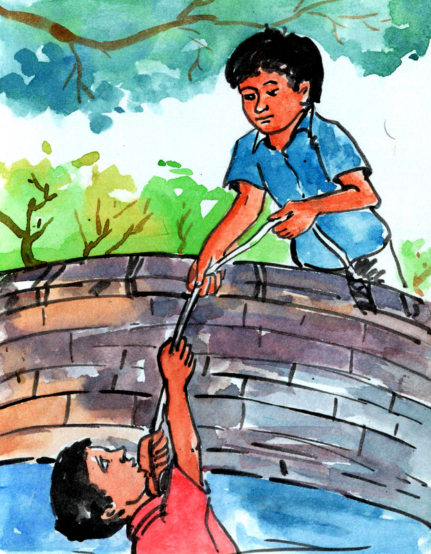 బావిలో చాలా నీళ్లు ఉన్నాయి- కానీ పదేళ్ల రవికి ఇంకా ఈత రాదు. వాడు మునుగుతూ తేలుతూ చేతులు పైకెత్తి కేకలు వేయటం మొదలెట్టాడు.