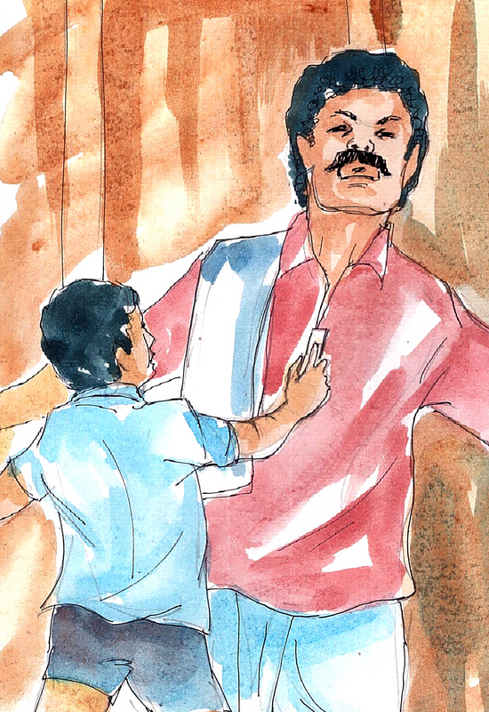 "నేను ఊరుకునేది లేదు. నిన్ను జైల్లో పెట్టిస్తాను. ఏం చేస్తానో చూడు" అని నేను కోపంతో అరిచాను.