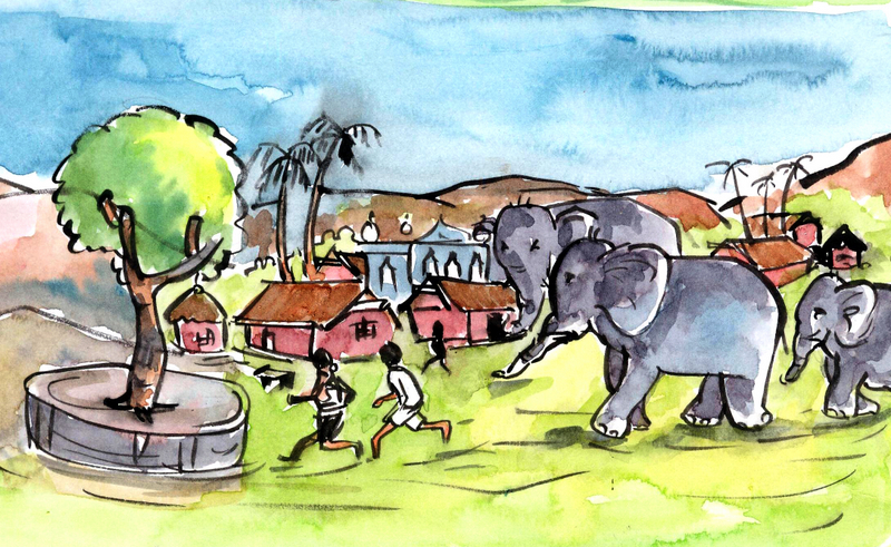 ఏనాడూ లేనిది ఏనుగులు పంటపొలాలమీదికి వచ్చాయంటే, అడవిలో వాటికి ఏదో సమస్య ఎదురై ఉంటుంది. గత సంవత్సరం వానలు కూడా సరిగా పడలేదు; అడవిలోని మడుగులు ఎండి ఉంటాయి. నీళ్లకోసం అవి గ్రామ ప్రాంతాలకు వచ్చి ఉంటాయి. ఇప్పుడు మన వద్దకు వచ్చింది ఒక్క గ్రామ ప్రజలే- త్వరలో అనేక గ్రామాలవాళ్ళకు ఈ సమస్య ఎదురవు-తుంది. మనం అందరికీ డప్పులు, టపాకాయలు ఇవ్వలేం కదా; సమస్య మూలాన్ని స్పృశించేట్లు, మనం త్వరలో ఏదో ఒకటి చేయాల్సి ఉంటుంది" అన్నాడు.
