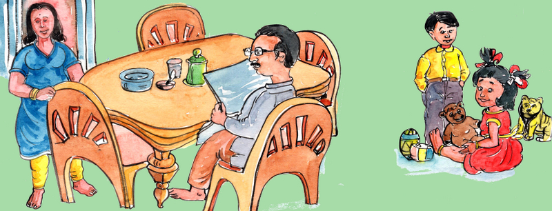అనగనగా ఒక ఇంట్లో ముగ్గురు పెద్దవాళ్ళు- నాన్న, అమ్మ, నానమ్మ ఉన్నారు.