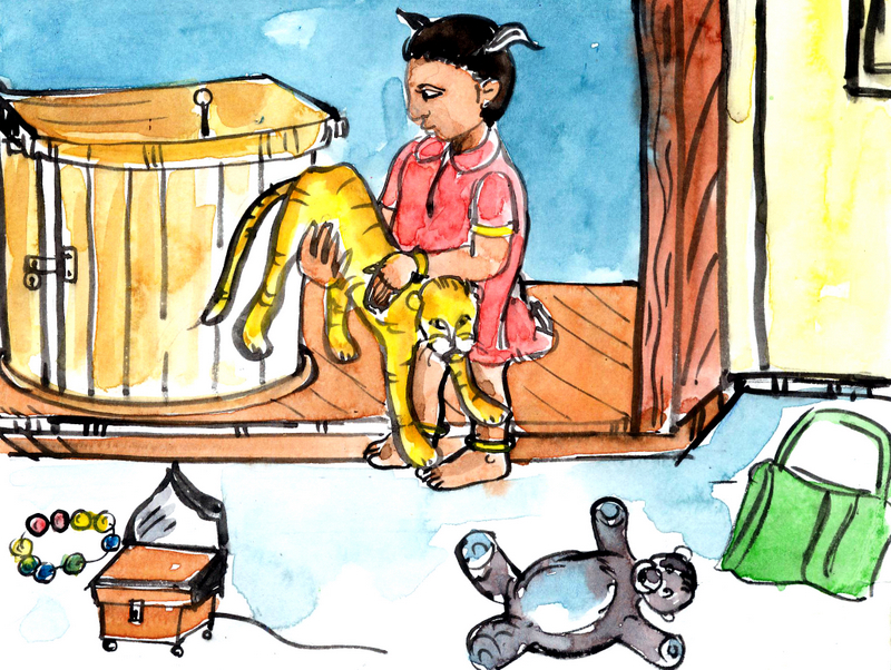 శీల తన బొమ్మలన్నింటినీ ఒక్కటొక్కటిగా నానమ్మ గదికి చేరుస్తూ "నా టిగ్గర్ బొమ్మ ఏదీ?" అని ఇల్లంతా వెతుక్కున్నది.