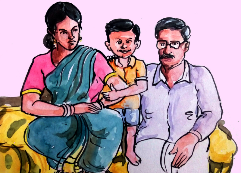అయితే వాళ్ళమ్మ చూసింది కదా, ఆవిడకు సంగతి అర్థమైంది. వెంటనే వాడిని ఇంట్లోకి తీసుకువెళ్లి, పడుకోబెట్టింది. గ్లాసెడు నీళ్ళలో చిటికెడు ఉప్పు, రెండు చెంచాలు చక్కెర వేసి కలిపి, అవి కరిగాక కొంచెం నిమ్మరసం పిండి తీసుకొచ్చి త్రాగించింది. ఆ తర్వాత వాడికి నిద్ర పట్టేసింది! అప్పుడు అమ్మే వాడి స్కూలు డ్రస్సు మార్చి, వదులైన కాటన్ డ్రస్ వేసింది.