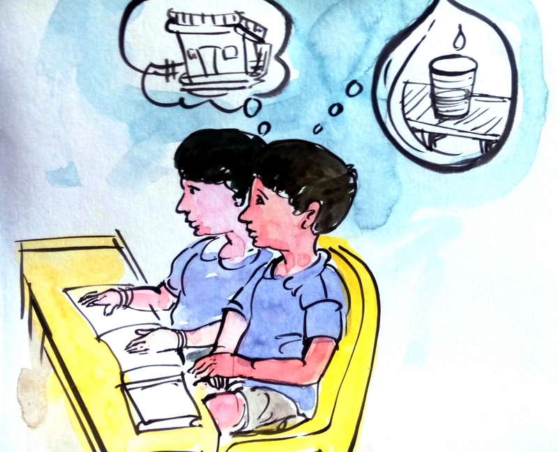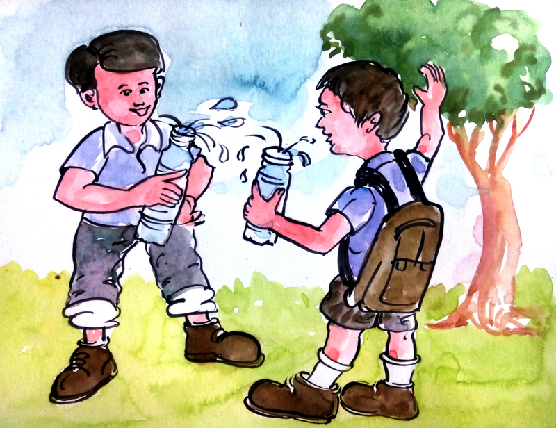 "స్కూలులో కుళాయి దగ్గర నీళ్లు తీసుకొని త్రాగచ్చు కదా?"- ఉహు. వాడికి ఆ సంగతి అంత బాగా తెలీదు. చిన్న పిల్లవాడు కదా. "ఇంటికి వెళ్ళిన తర్వాత త్రాగొచ్చులే" అని అలా ఉండిపోయాడు.