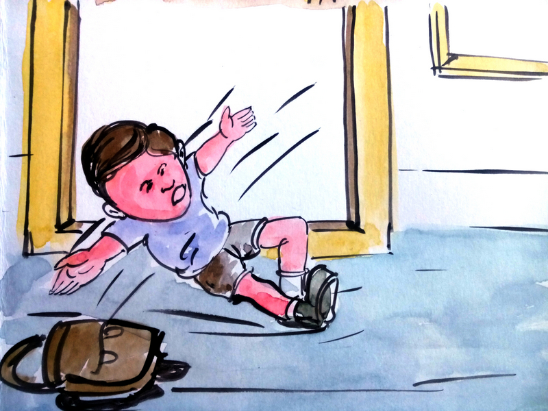 మరి అసలే మండే ఎండలు, మధ్యాహ్నం స్కూలు వదిలి ఇంటికి వచ్చేసరికి రెండు దాటింది. వాడి ఒంట్లో నీళ్ళన్నీ ఆవిరి ఐపోయినట్లున్నాయి- దాంతో వాడు చాలా 'డీ హైడ్రేట్' అయిపోయాడు- ఇంటి గుమ్మం దగ్గరే కళ్లు తిరిగి పడిపోయాడు!