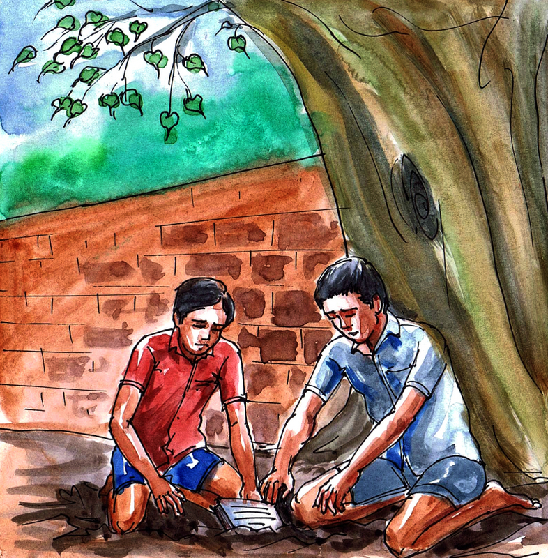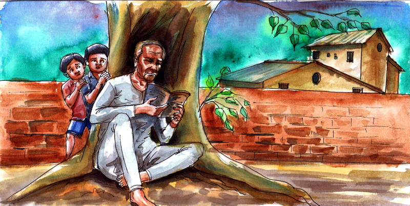 మా ఇల్లు ఉండేది ఒక నదికి దగ్గర్లోనే. ఆ నది ఒడ్డునే ఒక పెద్ద రావి చెట్టు ఉంది. విశాలమైన కొమ్మలతో తెరిచిన గొడుగులా ఉంటుందది. ఆ చెట్టు వయసు మూడు వందల సంవత్సరాలు అనీ, చెట్టు తొర్రలో పాములుంటాయనీ చెప్పుకునేవాళ్ళు మా ఊరి జనం. కానీ అది నిజం కాదు. నేను, రహ్మాన్ కలిసి ఆ చెట్టు ఎక్కి, దాని తొర్రల్లోకి దిగి చూశాం కూడా. పాములు లేవు; పురుగులు లేవు. ఊరికే బూజు వాసన వేస్తూ కొద్దిగా చెమ్మగా ఉంటుందక్కడ- అంతే. కాకపోతే లోపలికి వెళ్ళినప్పుడు చీకటి వల్ల భయంగా ఉంటుంది.