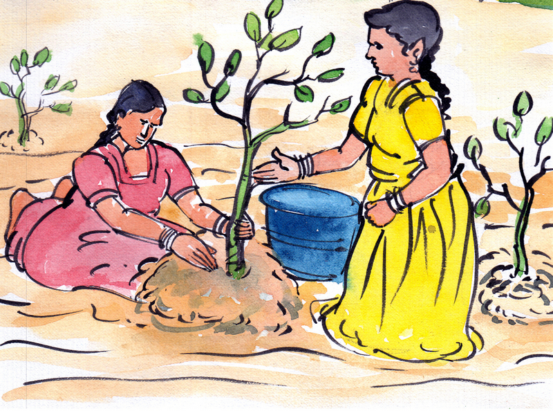 వాళ్లకు మొక్కనిచ్చిన ఆయన వచ్చి, దానికి నీళ్ళు పోస్తూ, "ఊరికే మొక్కలు నాటి పోతే లాభం లేదమ్మాయిలూ, వీటిని జాగ్రత్తగా చూసుకోవాలి కూడాను. మీకు వీలైతే రోజూ దీనికి కాసిని నీళ్ళు పోసి పోతారా? ఒక్క ఏడాది కాపాడితే చాలు- ఇది బతుక్కుంటుంది" అన్నాడు.