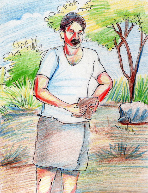ఆ సమయానికి సిప్పి ఇంట్లో లేదు. గుంబా నేరుగా పోయి, నులక మంచం మీద కూర్చొని, తనకు దొరికిన ఆ సాధనాన్ని బయటికి తీసి, దానిలోకి చూసాడు ఆత్రంగా. అందులో తండ్రి ముఖం ఇంకా అలాగే ఉంది. అయితే ఇప్పుడది కొంచెం ఆత్రంగా ఉన్నట్లు అనిపించింది-