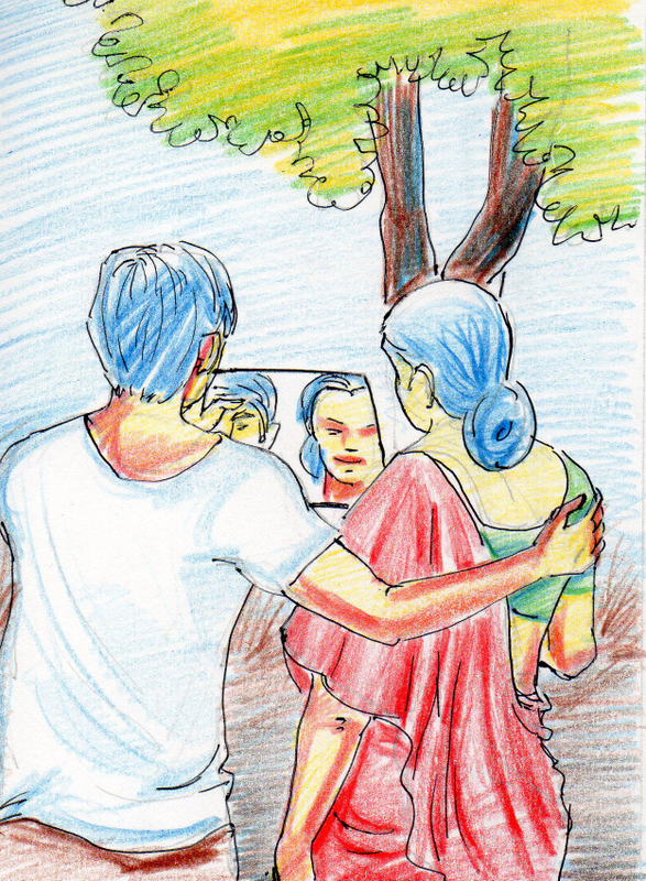 "ఊరుకో! అది మీ నాయన కాదు! నువ్వే!" అన్నది సిప్పి, సిగ్గు పడుతూ. అద్దంలో ఆమె కూడా సిగ్గుపడింది.