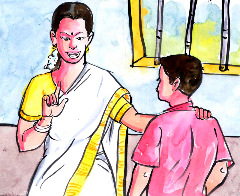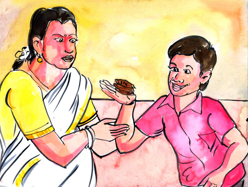 రాజు వాళ్లమ్మకు కోపం వచ్చింది. అట్లా ఎవరికీ చెప్పకుండా ఎందుకు తీసావు? అది దొంగతనం అవుతుంది! అట్లా చేయకూడదు! ఇతరుల వస్తువులను దొంగలించకూడదు! అది ఎంత అసహ్యపు పనో తెలుసా?" అని బాధ పడింది అమ్మ. రాజు చేసిన పనికి ఆమె కళ్లలో నీళ్ళు తిరిగాయి.