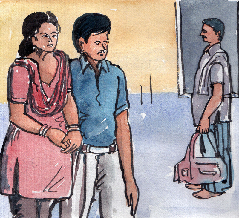 "ఇప్పుడిక సాకులు చెప్పకండి. మీకు తెలీనిదేమున్నది? మీరూ ప్రభుత్వ ఉద్యోగులేగా? కట్నం ఇవ్వడం, తీసుకోవటం కూడా నేరమే కదా అందువల్ల ముందు మిమ్మల్ని, ఆ తర్వాత మీ మామని కూడా అరెస్టు చేస్తాం" అంటూ బేడీలు తీశాడు ఇన్స్పెక్టర్. "లేదు సార్.. కాదు సార్.. ఇవి కట్నం కాదు సార్.. మరి ఇవి.. అట్లా కాదు- తప్పయి పోయింది- కాపాడండి- మీరే ఏదో ఒకటి చేయాలి సార్.." బ్రతిమిలాడటం మొదలెట్టాడు ప్రసాదు.