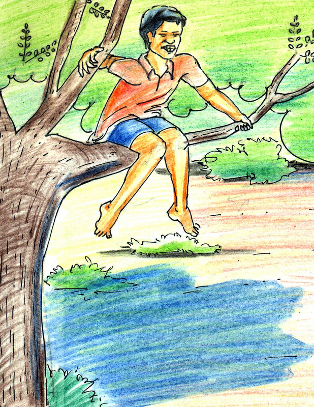 రాము సూరిగాడిని కొట్టేందుకు పోతే, వాడు అందకుండా క్రిందికి దూకి తరగతిలోకి పరుగుపెట్టాడు!