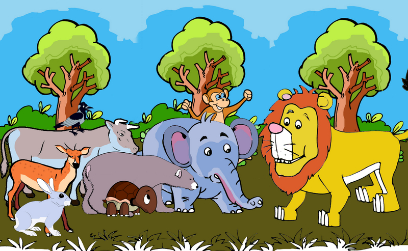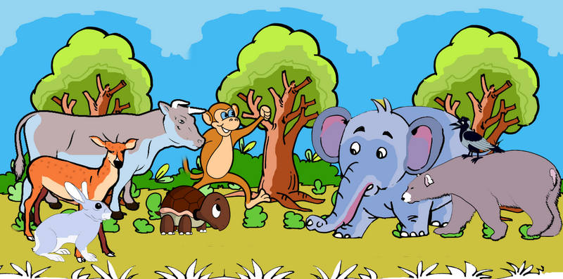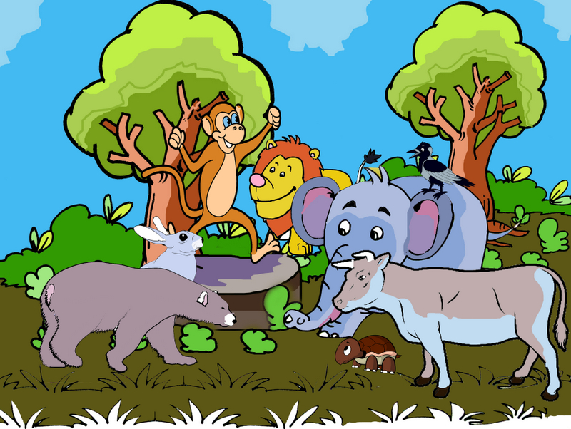 అనగనగా ఒక అడవిలో జింక, కుందేలు, కాకి, తాబేలు, ఆవు, ఏనుగు, ఎలుగుబంటి, ఇలా చాలా జంతువులు నివసించేవి. ఇలా ఎన్నో జంతువులు ఒకరికి ఒకరు సహాయం చేసుకుంటూ ఏ బాధ లేకుండా ఉండేవి.