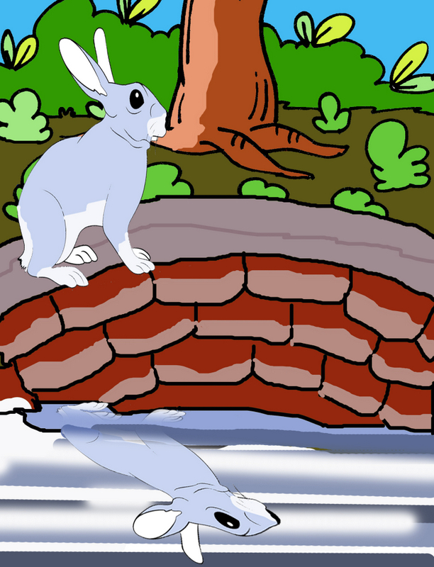 అది రోజూ మనవాళ్ళని చంపి తింటున్నది! మీరు దాన్ని క్షణంలో చంపెయ్యండి!” అని సింహాన్ని, మిగిలిన జంతువుల్ని కూడా ఒక బావి దగ్గరికి తీసుకెళ్ళింది.