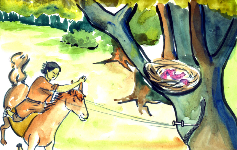 అంతలోనే అతని కళ్ల ఎదురుగా ఓ పాము- మెల్లగా చెట్టు మీదికి ఎగ బ్రాకింది. చెట్టు మీద ఉన్న గూట్లో పక్షి పిల్లలు ప్రాణ భయంతో అరవసాగాయి. యువరాజు ఫిలిప్ చేతిలోని చురకత్తి తటాలున పైకి లేచింది. ఆ పామును రెండు ముక్కలు చేసేసింది.