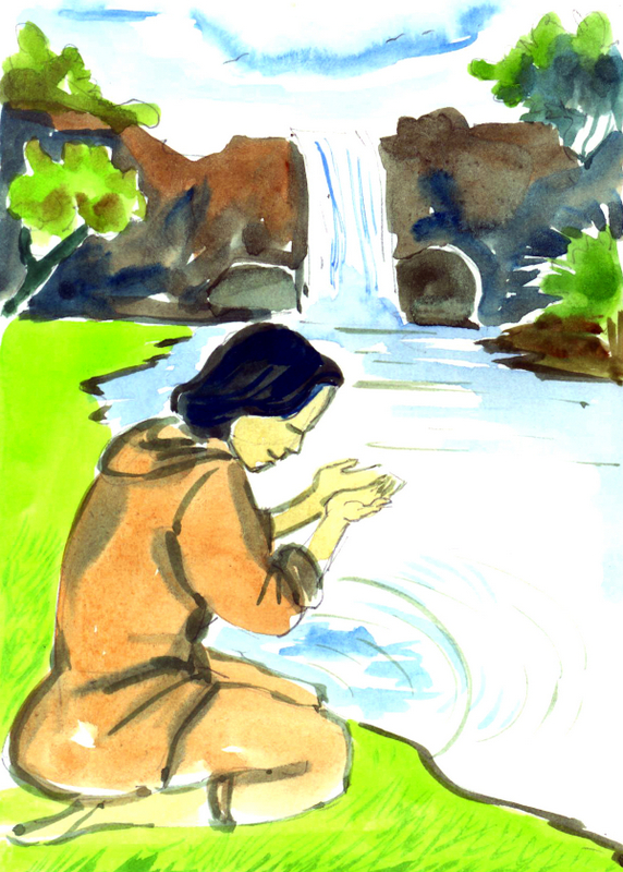 యువరాజు చకచకా జలపాతాన్ని సమీపించాడు. చల్లని ఆ నేలలో ముఖం కడుక్కొని సేదతీరాడు. చల్లటి ఆ నీళ్లు అతనికి ఒక కొత్త ఉత్సాహాన్ని, శక్తిని ఇచ్చాయి. అంతలోనే మళ్లీ ఒకసారి గుర్రపు సకిలింత!! సందేహంలేదు- అది తన గుర్రమే!