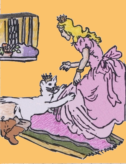అయితే యువరాణి తను ఎవరో గుర్తు పట్టనే లేదు. పిల్లిని ముద్దు చేస్తూ" ఏంటి పిల్లీ! ఏంటి పిల్లీ!" అని మాత్రం అంటున్నది! యువరాజు కళ్లల్లో నీళ్లు తిరిగాయి. "ఏం జరుగుతున్నది, ఎందుకిలాగ? తనకి పిల్లి రూపం ఎందుకొచ్చింది? యువరాణి గుర్రం ఎలా అయింది?!" అంతులేనన్ని ప్రశ్నలు అతని చిట్టి పిల్లి మెదడును తొలిచేశాయి.