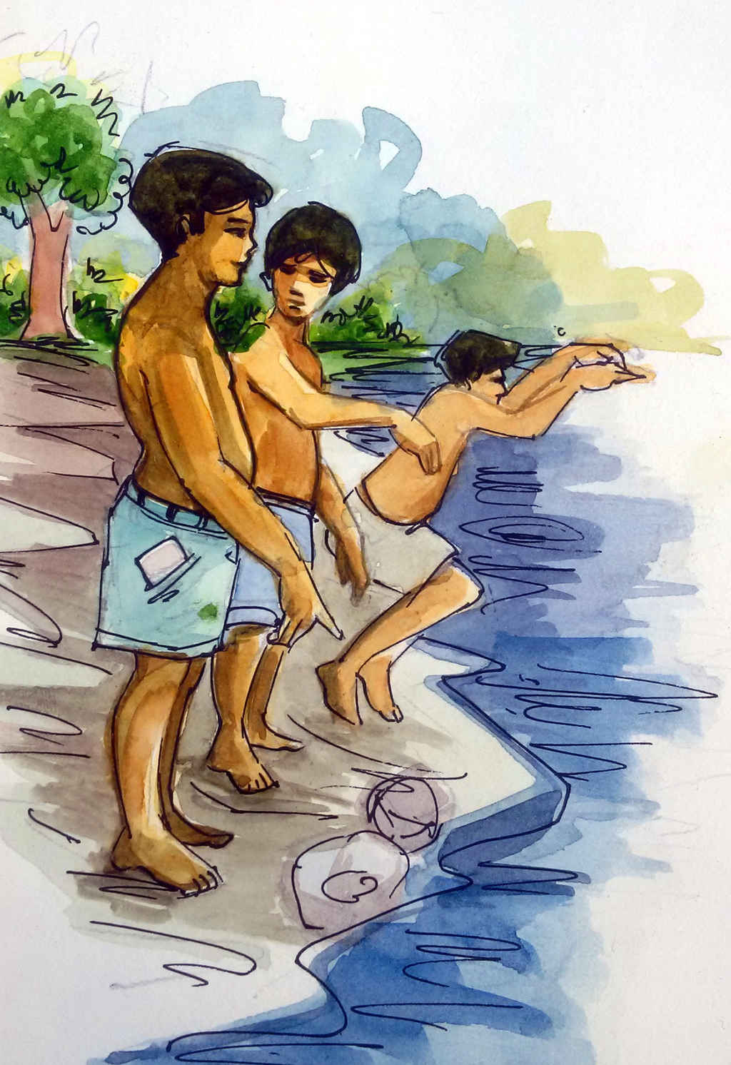 చిన్ను చాలా సేపు ఈతకొట్టి, వెనక్కి తిరిగి వచ్చాక చూసుకుంటే స్మార్ట్ఫోను లేదు! కొద్ది సేపు అక్కడా ఇక్కడా వెతికాక, ఏవేవో గొణుక్కుంటూ అయోమయంగా ఇంటికి పోయాడు చిన్ను.