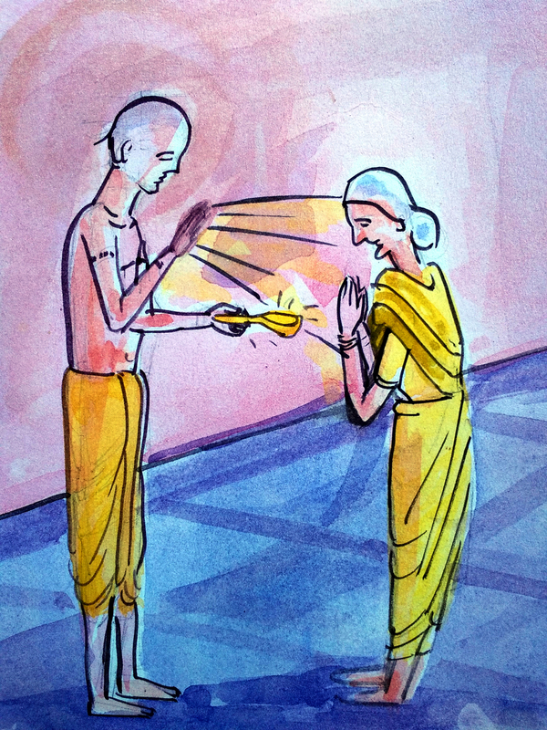 "ఇవాళ్ళ పండగ కదా, స్వామీ! ఇవాళ్లంతా ఉపవాసం ఉండి, రేపు తింటాను నేను" అన్నది అవ్వ.