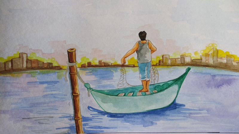 ప్రమాదకరమైన సుడిగుండాలలోకి జొరబడేటప్పుడు, ముందుగా నది ఒడ్డున నేలలోకి ఒక గుంజను పాతేవాడు. దానికి పొడవాటి మోకును ఒకదాన్ని కట్టేవాడు. ఆ మోకు రెండో చివరను తన పడవకు కట్టేవాడు. ఎప్పుడూ ఆ తాడు పరిధిలోనే చేపలను వేటాడేవాడు.