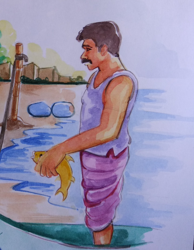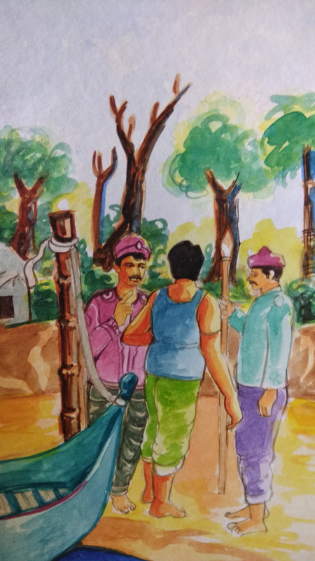 ఒకనాడు నదిలో చేపలు పట్టే బెస్తవాళ్లను వెతుక్కుంటూ కొందరు రాజభటులు వచ్చారు. "మా రాజు గారికి ఒక రకం పక్షవాతం వచ్చింది. అది నయం కావాలంటే అయన చేతికి వెండి చేప రక్తం పూయాలి; కాలికి బంగారు చేప రక్తం పూయాలి అని వైద్యులు చెప్పారు. మీరు ఎప్పుడూ నదిలోనే తిరుగుతుంటారు కాబట్టి, అట్లాంటి చేపలు మీకేమైనా నదిలో దొరుకుతాయేమో చూడండి. వాటిని పట్టుకొచ్చి రాజు గారికి ఇచ్చారంటే, వెండి చేప పట్టి తెచ్చిన వారికి వెండి పడవ; బంగారు చేప పట్టి ఇస్తే వారికి బంగారు పడవ బహుమానంగా ఇస్తారు!" అని చాటించి పోయినారు.