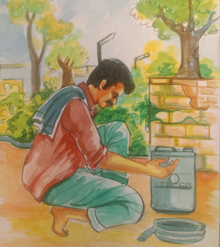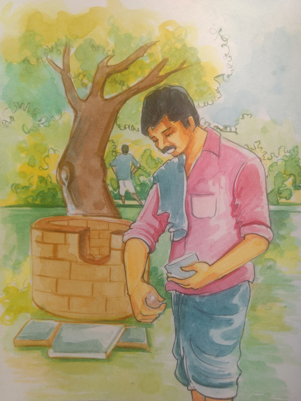 "ఏముంది, బాగా ఎండి కోతలకు సిద్ధంగా ఉన్న పంటకు నిప్పు పెడితే సరి!" అనుకున్నాడు. అందుకు కావలసిన సామాన్లన్నీ తీసుకొని ఆ రోజు రాత్రి చీకట్లో బయలుదేరాడు. కానీ తానొకటి తలిస్తే దైవం మరొకటి తలుస్తుందట! దారి మధ్యలోనే అతన్ని ఒక తేలు కుట్టింది! బాధతో విలవిలలాడి పోతున్న సోమయ్యకు రామయ్యే ప్రథమ చికిత్స చేసాడు!