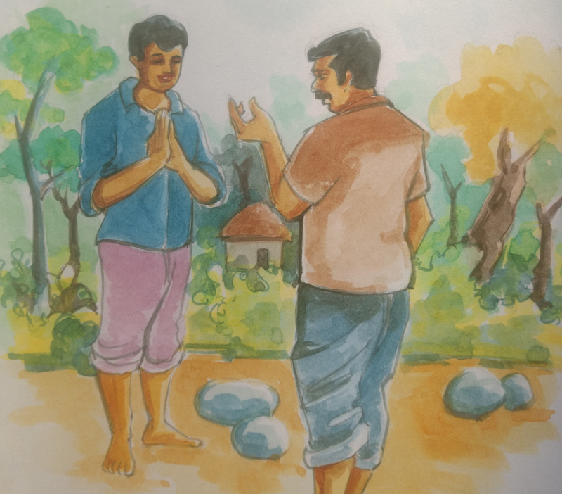 అయితే ఆ రోజున రామయ్యకు అస్సలు ఆకలిగా లేదు. 'తరువాత తింటాను. అన్నం మూటని తీసుకొని వెళ్తే దారిలో ఎక్కడైనా తినచ్చు' అనుకుంటూ పరధ్యానంగా సోమయ్య తన కోసం పెట్టుకున్న మూటని పట్టుకొని ఊళ్ళోకి వెళ్లాడు రామయ్య.