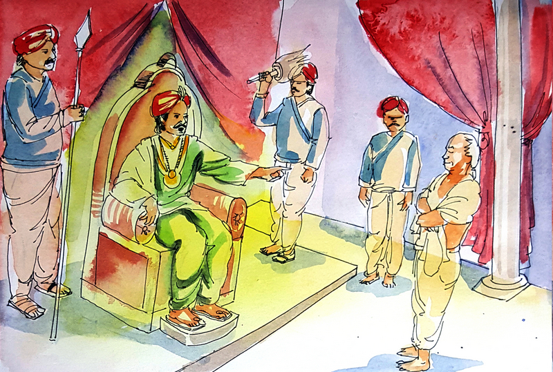 అంతలో పండితుల్లో ఒకడు అసలు రహస్యం కనుక్కొని బయటికి చెప్పేసాడు. అర్థమైన మిగతా వాళ్ళందరూ గొల్లున నవ్వారు. రాజుగారు పండితుణ్ణి మందలించి ఇంటికి పంపేశారు. పాపం, తన పాండిత్యంతో ఏ ఉద్యోగమో, ఏ కొన్ని డబ్బులో వస్తాయనుకున్న పండితుడు తలవంచుకొని ఇంటిదారి పట్టాడు!