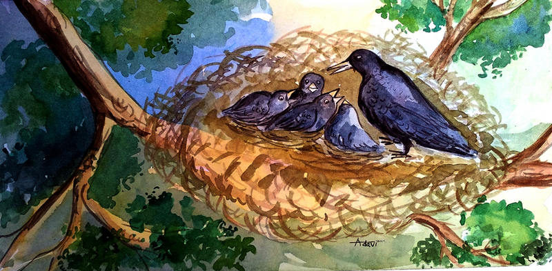 కటారుపల్లె శివార్లలో వేపచెట్టు ఒకటి ఉండేది. అందులో గూడు కట్టుకుని నివసించేవి, ఒక తల్లికాకి, దాని నాలుగు చిట్టి చిట్టి పిల్లలు!