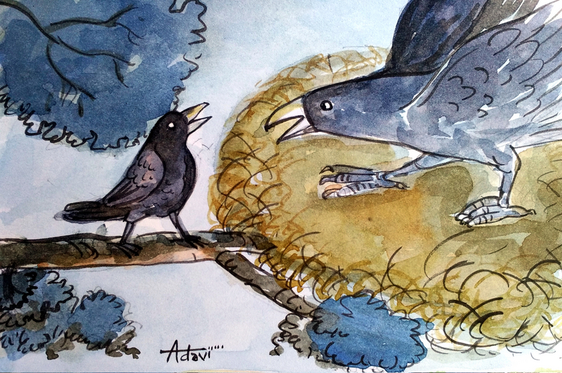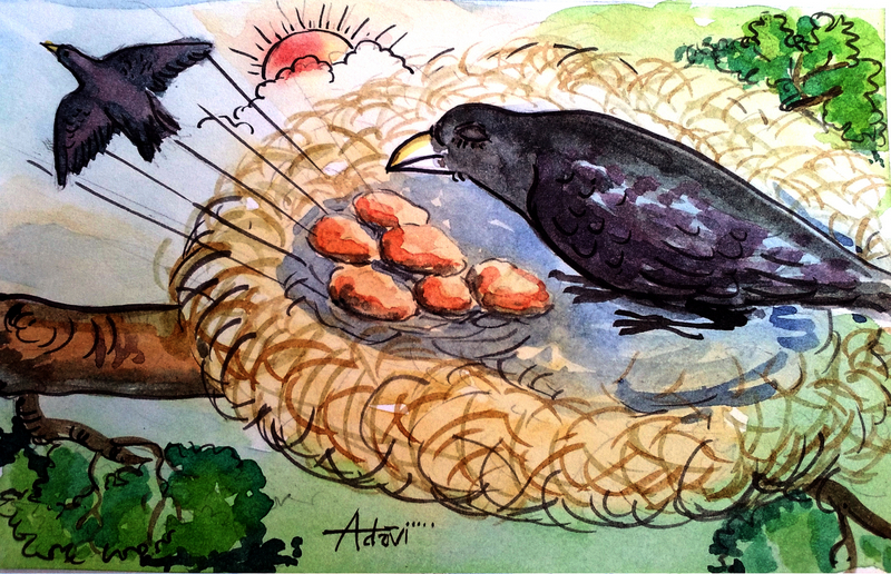 'ఏం చేస్తాం వదినా, తప్పదు! పిల్లలు పెద్ద అయ్యేంతవరకూ దుష్టుల్ని దూరంగా ఉంచాలంటే ఇది తప్ప వేరే మార్గం లేదు! అయినా ఏం పోయిందిలే, నాకు ఇంకో పిల్ల అనుకుంటా' అన్నది తల్లి కాకి.