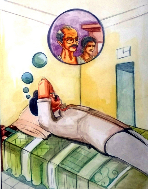 …. అంతలో రాజుకి మెలుకువ వచ్చింది. చూస్తే తను ఇంకా యువకుడే.. లలిత కూడా ఏమంత పెద్దకి కాలేదు. ఇద్దరికీ పిల్లలు పుట్టలేదు ఇంకా. ఇంకా రామయ్య-ఎల్లమ్మ బ్రతికే ఉన్నారు. నిన్ననే తను వాళ్లని తీసుకెళ్ళి వృద్ధాశ్రమంలో వేసాడు.. తనకు వచ్చిందంతా పెద్ద కల!