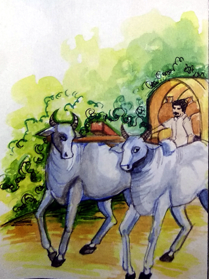 అతనితోపాటు నలుగురు సేవకులు- అందరూ ఎడ్లబండ్ల మీద బయలుదేరారు.