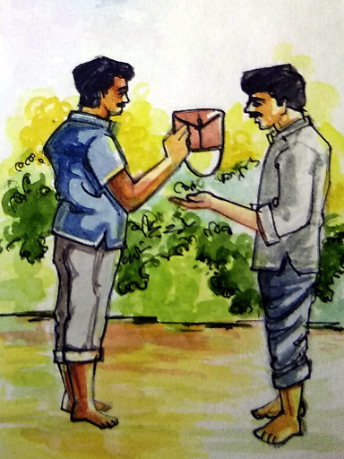 "ఇది నాదే, వీరబాహూ! చోళదేశంలో చేసిన వ్యాపారం తాలూకు డబ్బు మొత్తం ఇందులోనే ఉంది. నిన్న రాత్రి సింహపురి సత్రంలో నిద్రపోతుంటే పాపయ్య అనే వ్యాపారి దీన్ని దొంగిలించుకొని పోయాడు-" అని ఆగి, "మరి ఇప్పుడు అది నీ చేతికి ఎట్లా వచ్చింది?" అని అడిగాడు.
