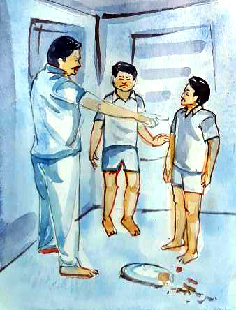 హరిధర్ చిన్నబోయాడు. "మేం ఇద్దరం ఒకే తరగతి సర్. ఇందాక వీడు, నేను ఏదో చిన్న ప్రమాదంలో చిక్కుకున్నాం. నా బట్టలకు బాగా మురికి అంటిందని వీడు తన బట్టలు ఇచ్చాడు. మా నాన్న వెంకన్న కూలి పని చేస్తాడు" అని చెప్పాడు భయం భయంగా.